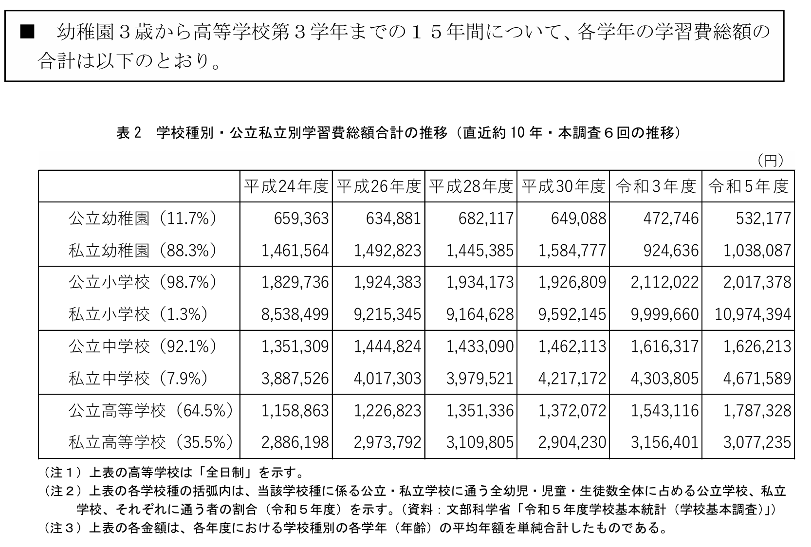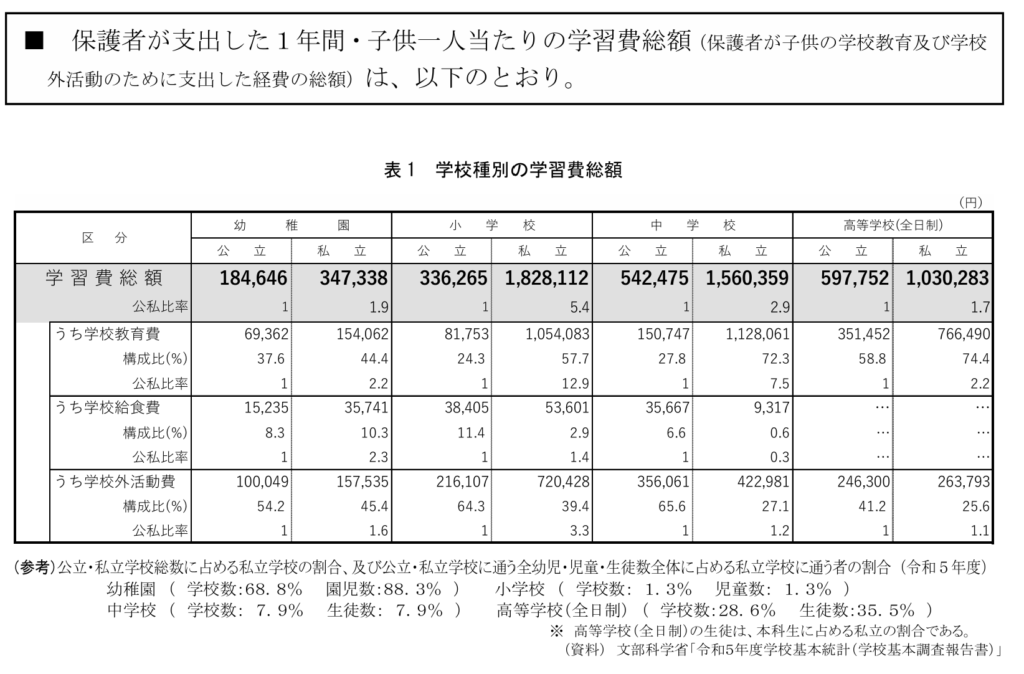 (出典)文部科学省「令和5年度子供の学習費調査の結果」