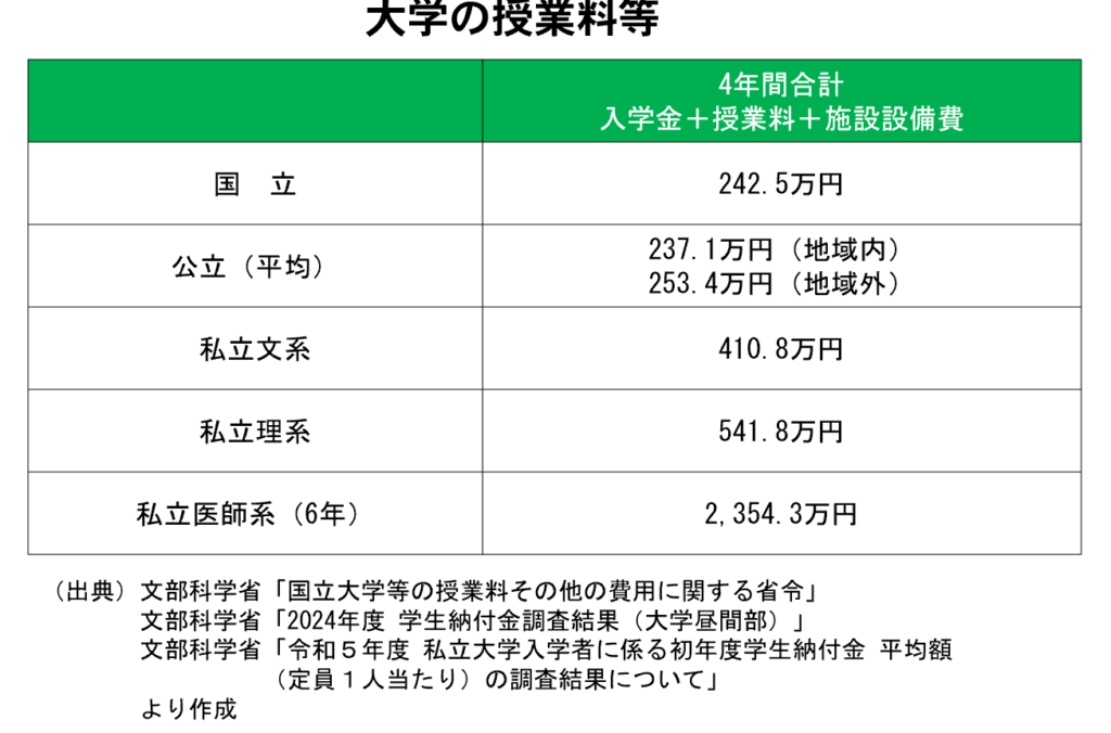 大学にかかる費用