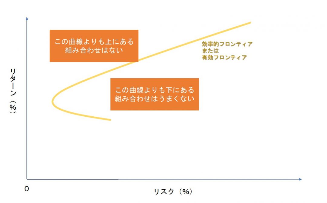 そして、リスク性商品を使っていく場合、効率的フロンティア(有効フロンティア)についてご理解をしていただきたいのでご説明をいたします。